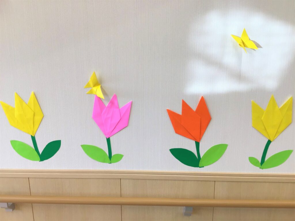 利用者様と折り紙で「チューリップ」を作りました。  (颯ユニット)